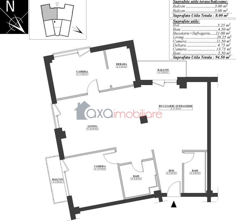 Apartment 3 rooms for sell in Cluj-napoca, Plopilor ID 651