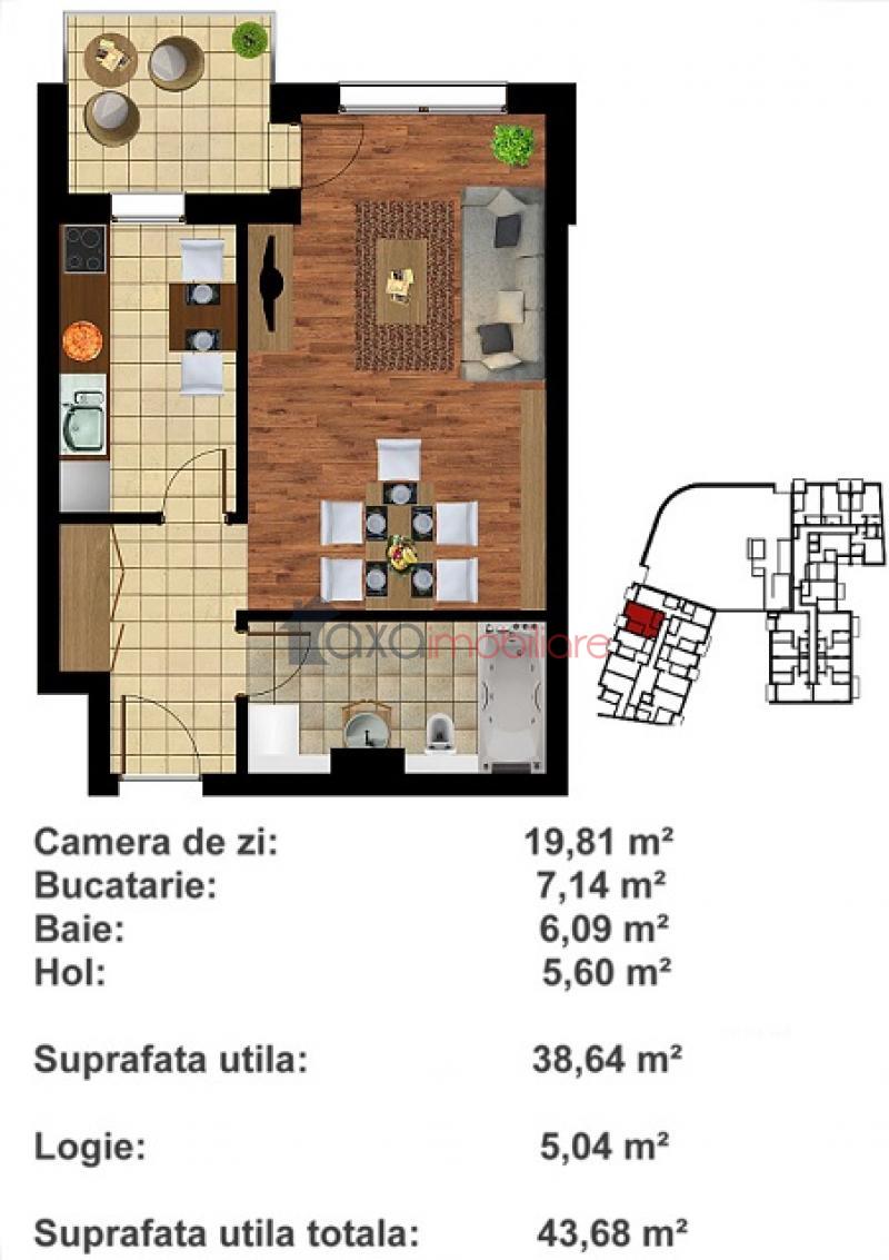 De vanzare apartament cu 1 camera, cu suprafata utila de 38 mp, decomandat, situat in Cluj-Napoca, in zona Piata Mihai Viteazu.