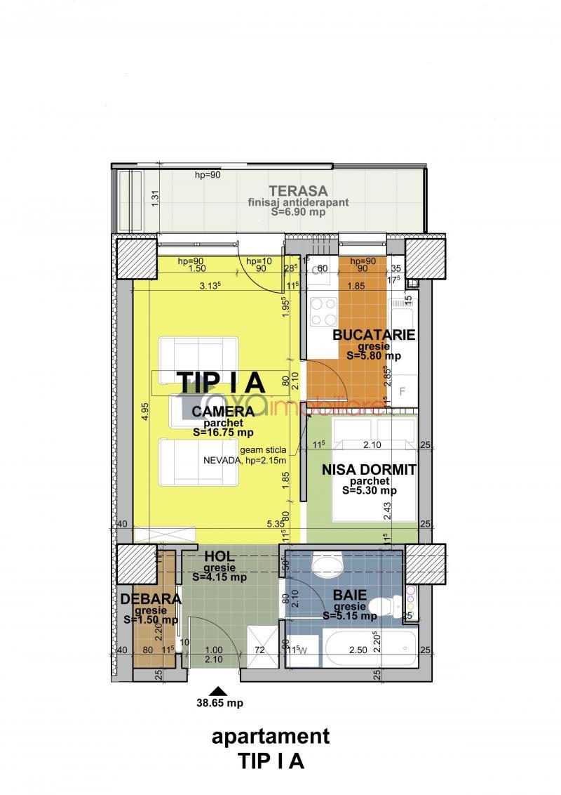 Va propunem spre vanzare apartament cu 1 camera, cu suprafata utila de 38.65 mp, pozitionat la etaj intermediar intr-un imobil cu regim de inaltime P+8E, ce dispune de lift.