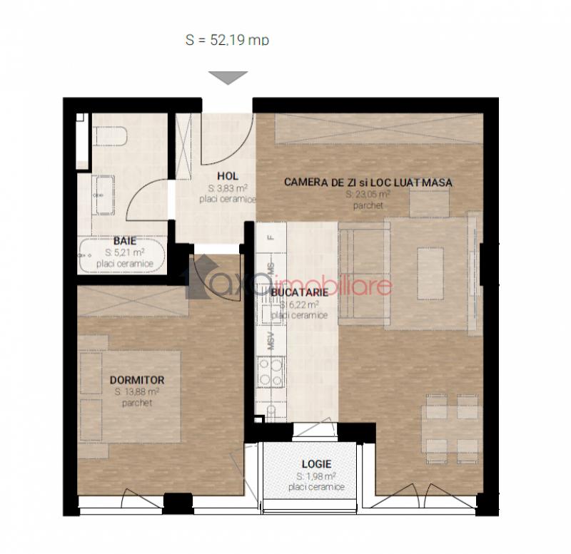 Suprafata utila este de 52.19 mp + 1 logie.
