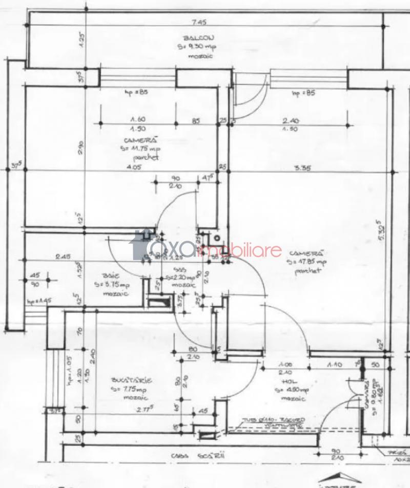 Compartimentare: 2 camere, 1 bucatarie, 1 baie, 2 holuri + 1 balcon.