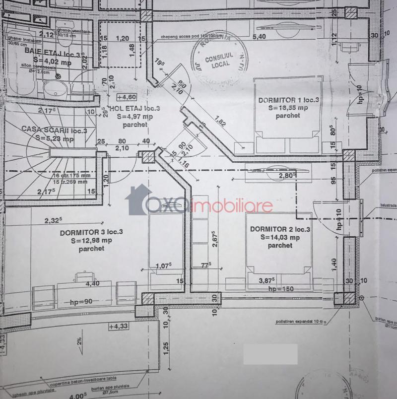 Etaj / Al doilea nivel: 3 dormitoare, 1 hol, 1 baie, 1 balcon + casa scarii.