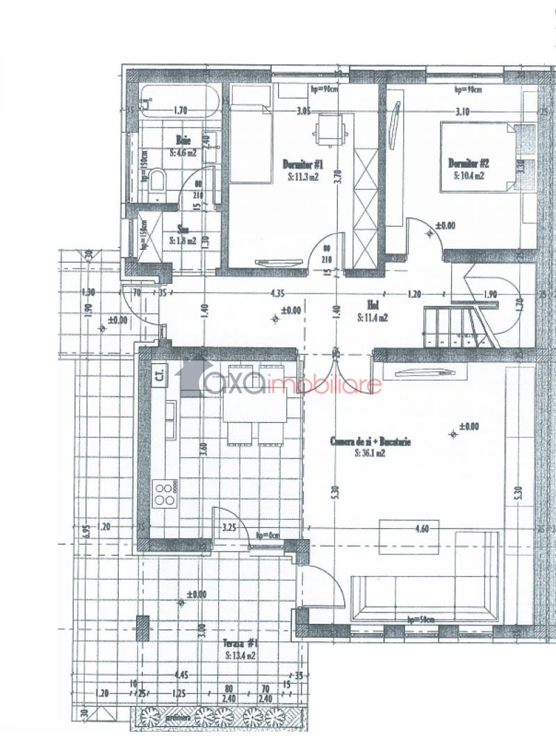 * Parter: 1 camera de zi, bucatarie, hol, sas, 2 dormitoare, 1 terasa.