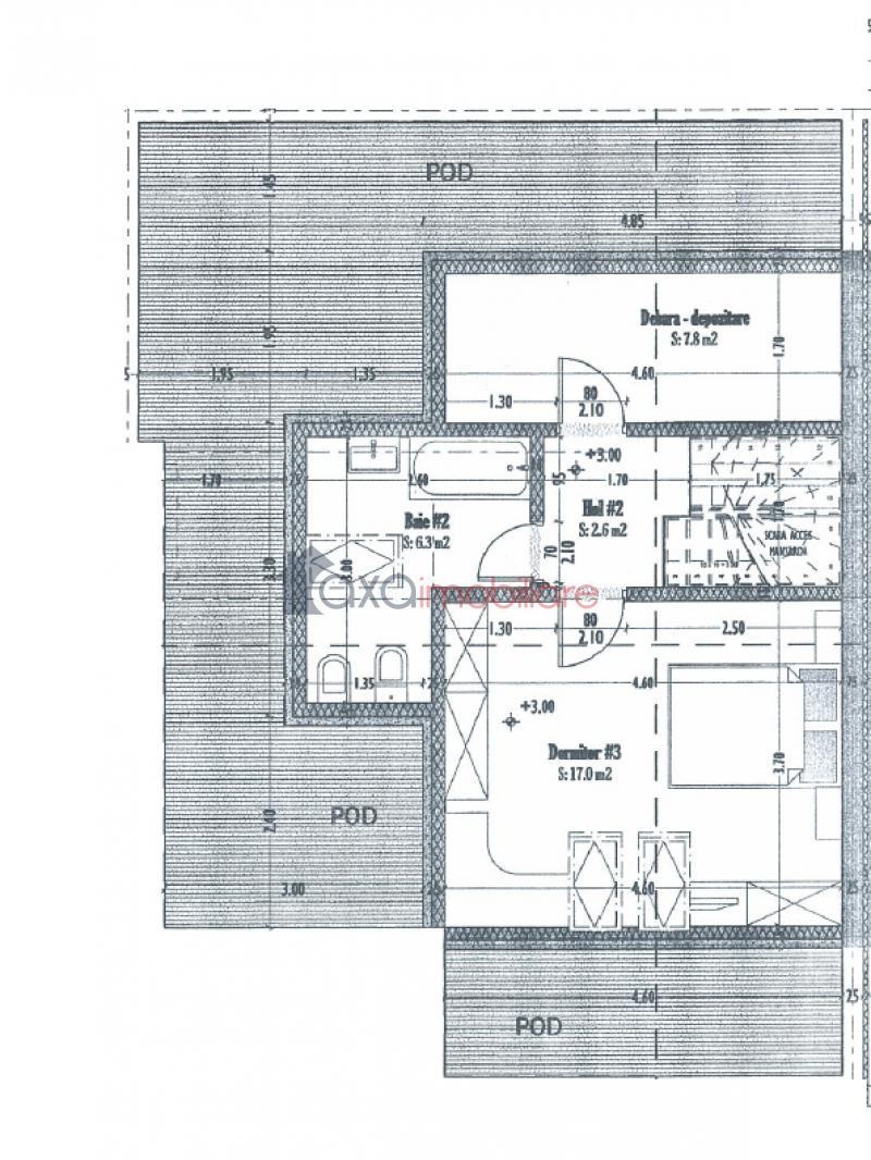 * Mansarda: debara / spatiu pentru depozitare, hol, baie, 1 dormitor.