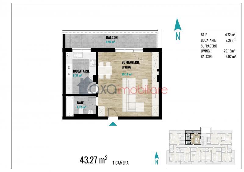 Apartamentul are o suprafata utila de 43.27 mp si este pozitionat la etajul 5/7.