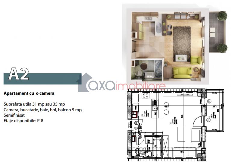Oferim spre vanzare apartament cu 1 camera, cu suprafata utila de 35 mp, semidecomandat, pozitionat la etajul 1 al unui imobil nou, finalizat in 2015, cu regim de inaltime P+10E, ce dispune de lift. Apartamentul este situat in cartierul Zorilor, zona Sigma, intr-o locatie linistita. Este compus din 1 camera, 1 bucatarie, 1 baie, 1 hol si 1 balcon. Dispune de geamuri termopan cu tamplarie din PVC si usa metalica la intrare. Se vinde la stadiul de semifinisat cu sapa autonivelanta si peretii gletuiti. Aceleasi compartimentari si suprafete se pot achizitiona atat la parter, cat si la etaje intermediare.