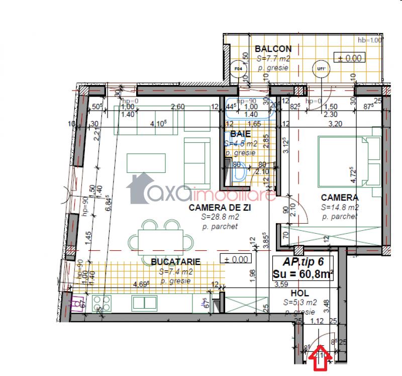 Imobilul dispune de compartimentare moderna: living cu bucatarie open space, hol, 1 dormitor, 1 baie si 1 balcon (7.7 mp).