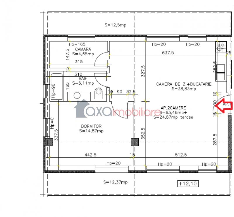 Dispune de o suprafata utila de 63.46 mp si de 2 terase (a cate 12.37 mp fiecare).