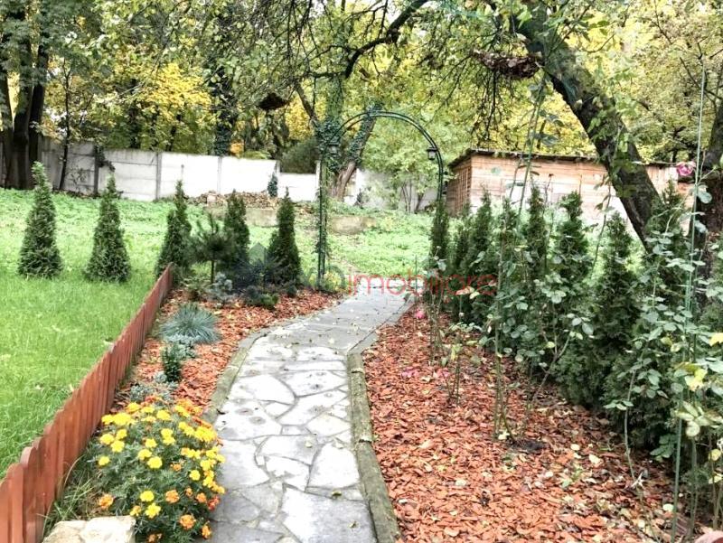Dispune de 1 terasa cu suprafata de 22 mp, pavata cu dale si amenajata cu gratar din piatra, loc de luat masa si 1 gradina cu alee de 54 mp amenajata cu conifere, arcada cu trandafiri si gazon.