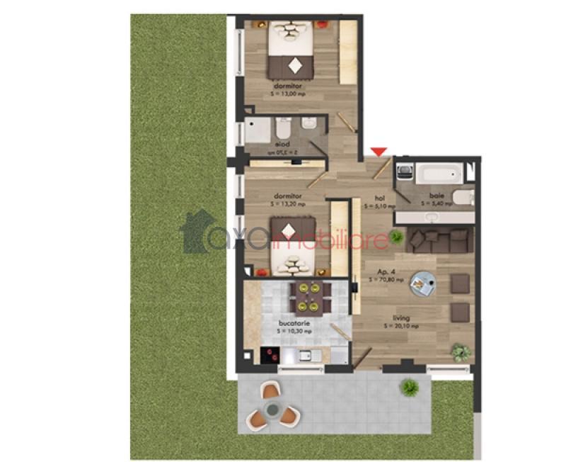 Propunem spre vanzare apartament cu 3 camere, imobil nou, semifinisat, decomandat, ce dispune de o suprafata utila de 70.80 mp si de gradina de 60 mp, situat in cartierul Buna Ziua, in apropiere de Calea Turzii.