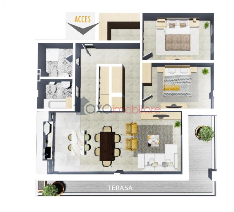 Compartimentarea este moderna si frumoasa; imobilul dispune de o terasa generoasa de 21.68 mp.
