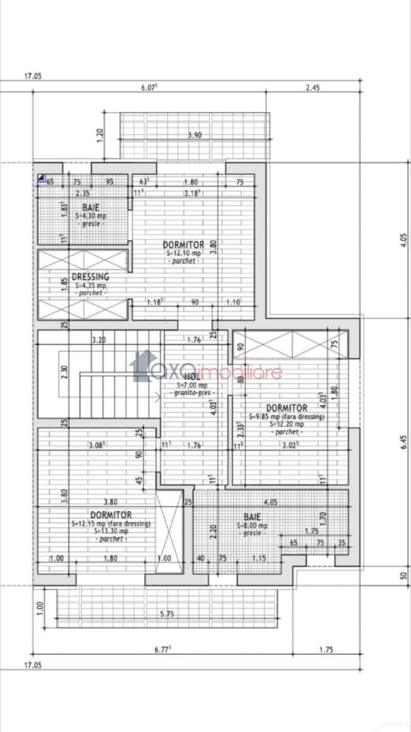 ETAJ / AL DOILEA NIVEL: 2 dormitoare simple, 1 baie comuna, hol, 1 dormitor matrimonial (cu baie si dressing), 2 terase