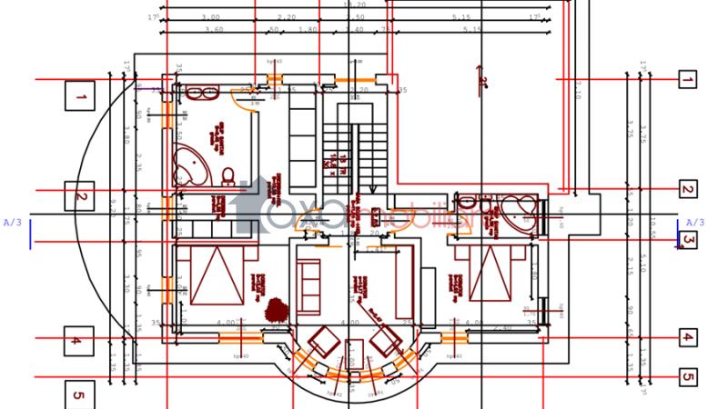 -PARTER / PRIMUL NIVEL: 1 living, 1 bucatarie, 1 birou, 1 debara, 1 baie, hol, 1 terasa, scara interioara.