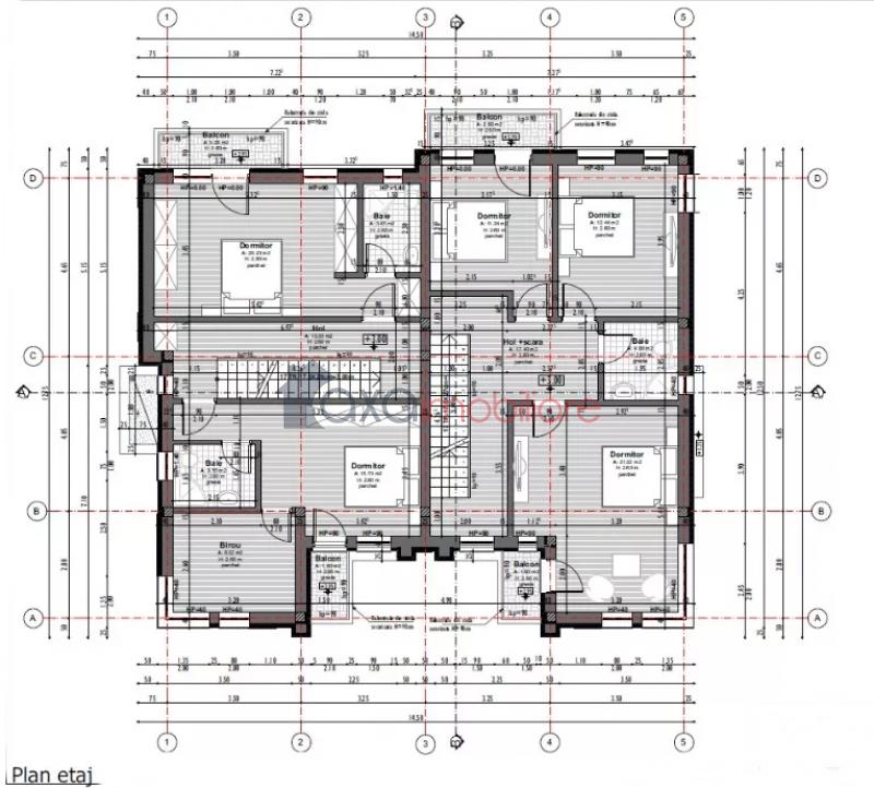 Compartimentare: 1 living, 1 bucatarie, 4 dormitoare, 1 debara, 3 bai, balcon si terasa.