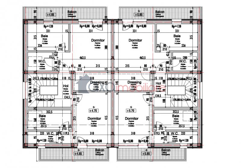 - AL DOILEA NIVEL / ETAJ: 1 dormitor matrimonial (cu baie, WC si balcon), hol, 1 dormitor matrimonial (cu baie, WC, dressing si balcon).