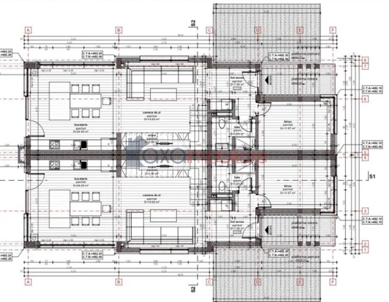 - PARTER / PRIMUL NIVEL: living cu bucatarie de tip open space, 1 birou, 1 hol, 1 baie, scara interioara + 1 terasa.